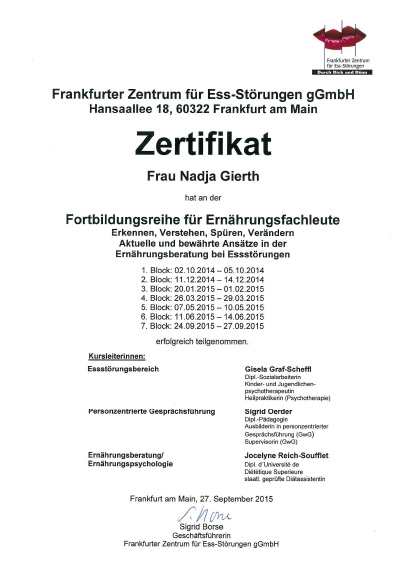 Gesunde Ernährung ist meine Berufung! Es bereichert mein Leben und das meiner Patient*innen. Es kommen täglich Menschen zu mir mit den unterschiedlichsten Geschichten. Essstörungen oder die unterstützende Behandlung von Arthrose oder eine zusätzlichen Begleitung einer Krebstherapie sind hierbei meine Themen. Bereits seit 2002 bin ich als Ernährungsberaterin tätig, direkt nach Abschluss des Studiums zur Oecotrophologin.